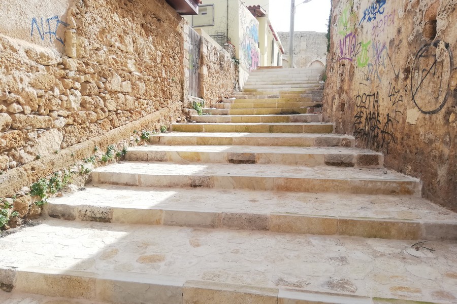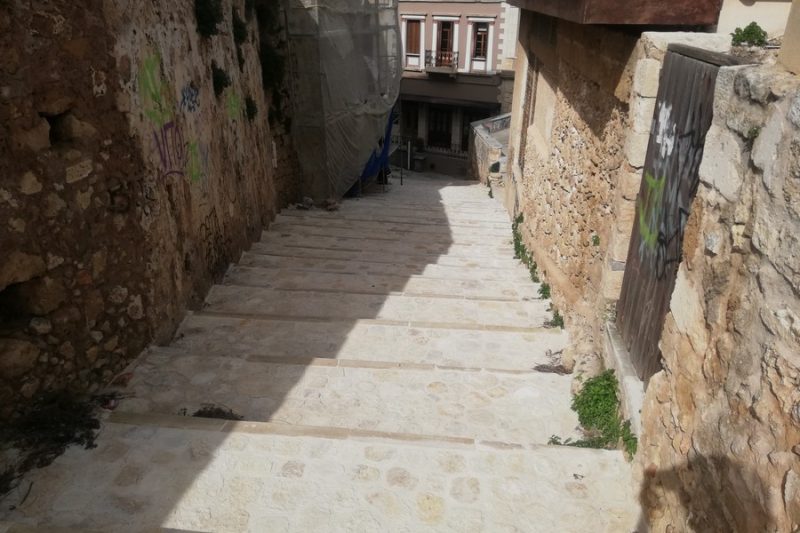 Το συγκεκριμένο έργο αφορούσε στη συνολική αποκατάσταση της πέτρινης σκάλας, που βρίσκεται στη βόρειο-ανατολική, εξωτερική πλευρά του λόφου “Καστελίου”, της Παλιάς Πόλης, και τέμνεται με τη δυτική, εξωτερική πλευρά του Μεγάλου Αρσεναλίου – Κέντρου Αρχιτεκτονικής της Μεσογείου (Κ.Α.Μ.).