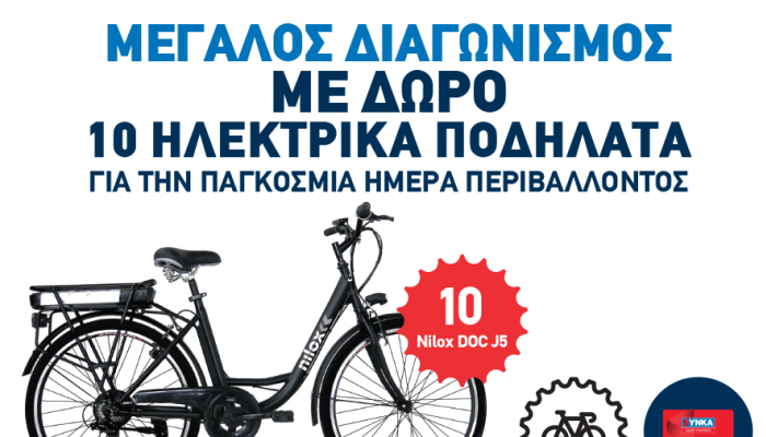 Πιο συγκεκριμένα, 10 οικολογικά ηλεκτρικά ποδήλατα δώρο σε όσους θα συμμετάσχουν στον μεγάλο διαγωνισμό που διοργανώνει η αλυσίδα σούπερ μάρκετ, για να γιορτάσει την Παγκόσμια Ημέρα Περιβάλλοντος.