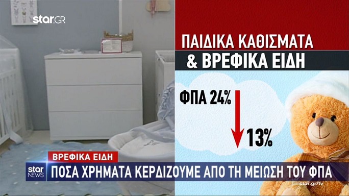 Μια βρεφική κούνια, που σήμερα κοστίζει 300 ευρώ, με χαμηλότερο ΦΠΑ θα πέσει στα 273 ευρώ