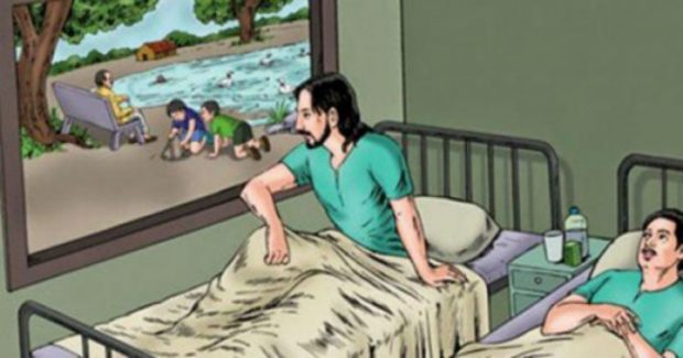 Δύο άνδρες , και οι δύο σοβαρά άρρωστοι, έμεναν στο ίδιο δωμάτιο ενός νοσοκομείου .Του ενός άνδρα του επιτρεπόταν να σηκώνεται όρθιος στο κρεβάτι του για μία ώρα κάθε απόγευμα για να κατέβουν τα υγρά από τα πνευμόνια του .