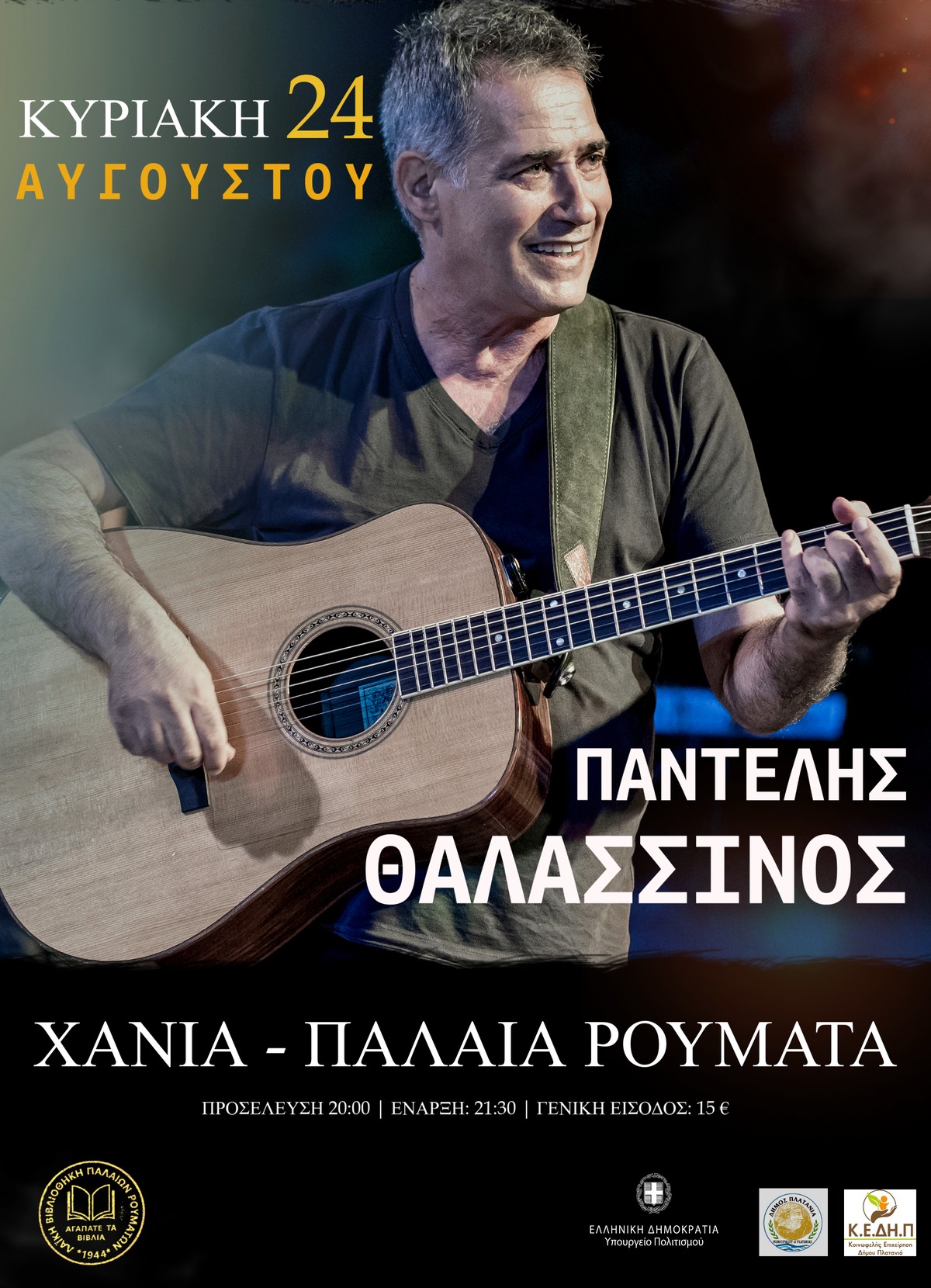 Η Λαϊκή Βιβλιοθήκη Παλαιών Ρουμάτων έχει τη χαρά να φιλοξενήσει τον Παντελή Θαλασσινό για μια μοναδική συναυλία την Κυριακή 24 Αυγούστου 2025 στις 21:30.