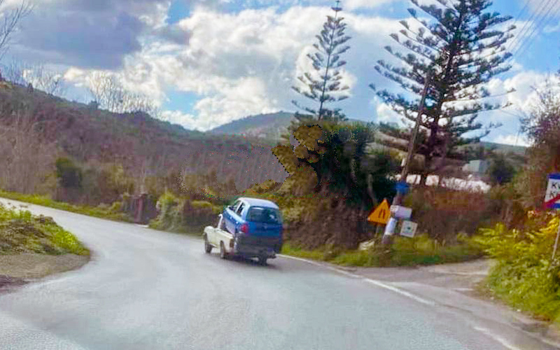 Δικάβαλο… βγήκαν βόλτα δυο αυτοκίνητα, στο δρόμο λίγο μετά τον αρχαιολογικό χώρο της Κνωσού.