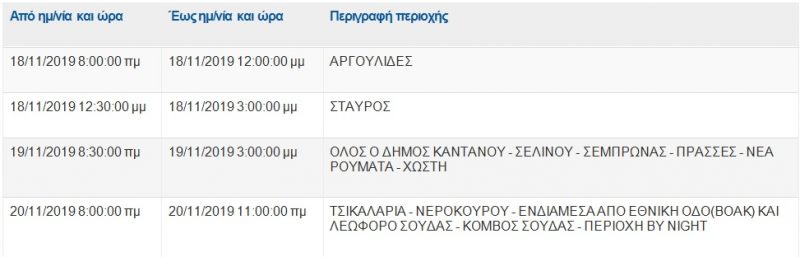 Δείτε αναλυτικά τις περιοχές και τις ώρες κατά τις οποίες θα διακοπεί η ηλεκτροδότηση:
