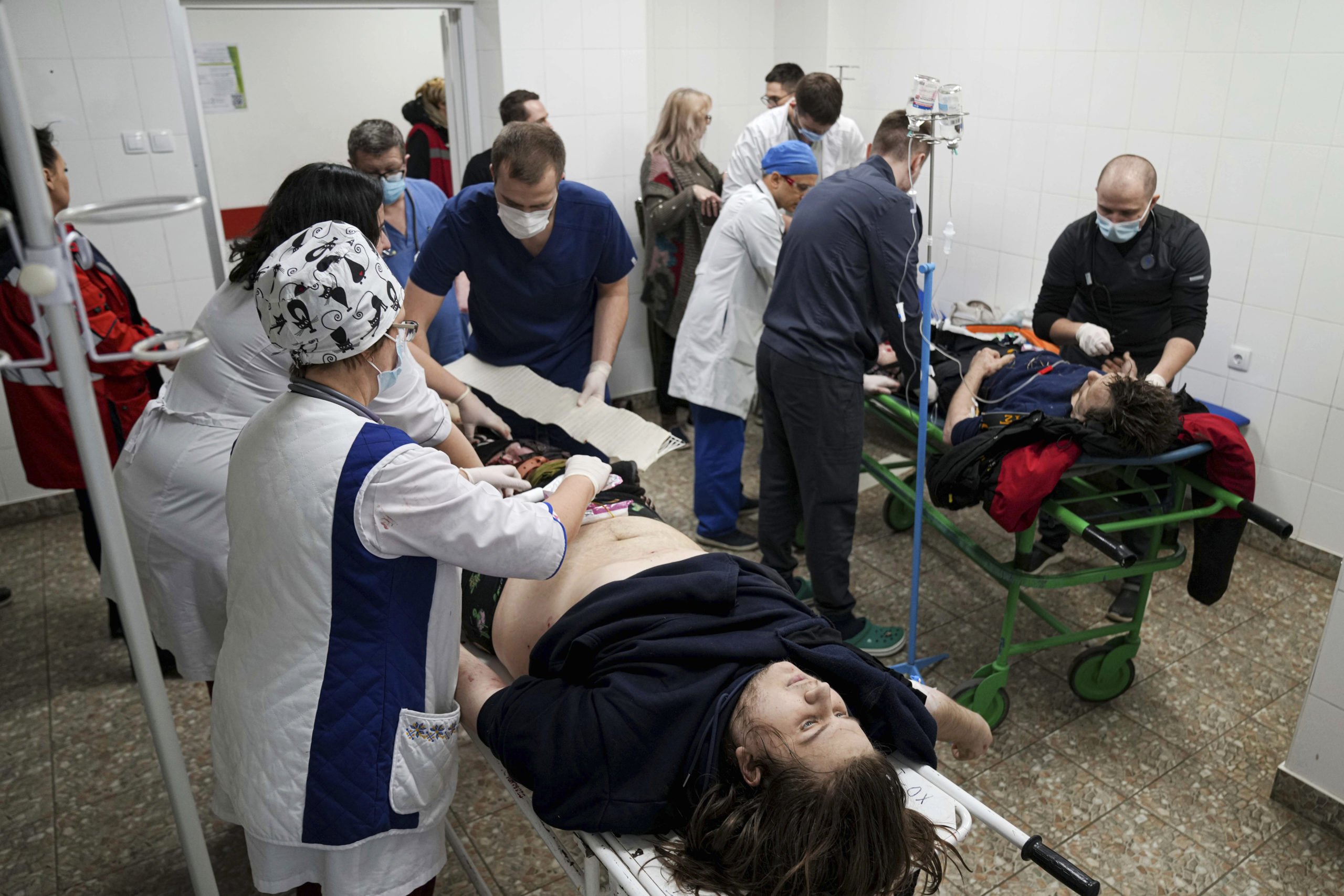 Μια άλλη γυναίκα, με αιμορραγία από το στόμα, ούρλιαζε από τον πόνο καθώς της περιποιούνταν τις πληγές. Λίγο πιο εκεί, γιατροί πραγματοποιούσαν χειρουργικές επεμβάσεις σε άλλους τραυματίες από τους βομβαρδισμούς.