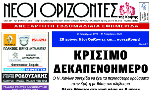 Μετά από 28 χρόνια εκδοτικής προσπάθειας νιώθουμε δικαιωμένοι, καθώς οι «Νέοι Ορίζοντες» έφτασαν και σταθεροποιήθηκαν στη 2η θέση των εφημερίδων του Νομού Χανίων, ενώ παράλληλα κάθε χρόνο βραβεύονται ανάμεσα στις καλύτερες περιφερειακές εφημερίδες της χώρας. Κι όλα αυτά με έδρα τη μικρή Κίσαμο που στήριξε και εξακολουθεί να στηρίζει “το δικό της έντυπο”, τη “δική της φωνή”.