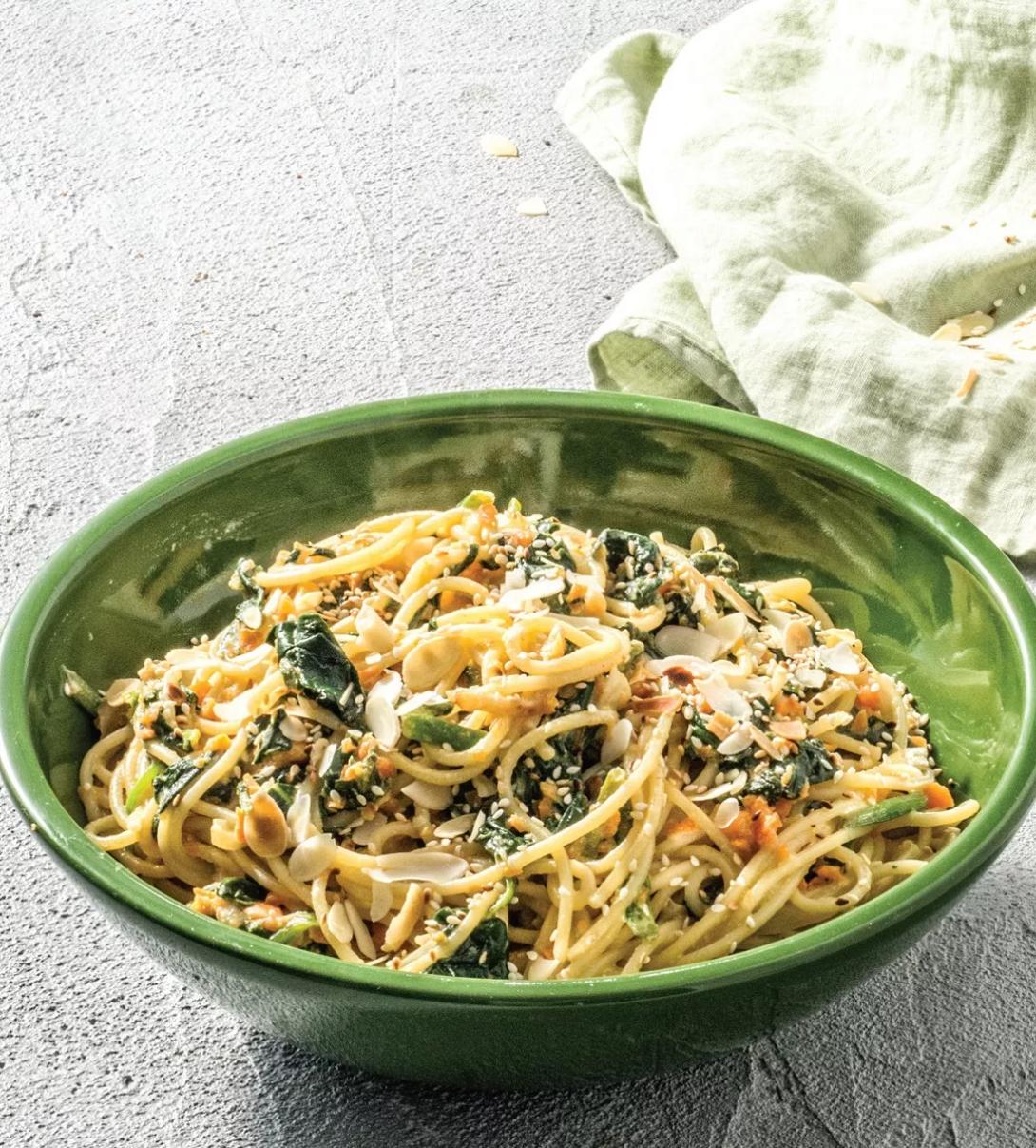 Άλλη μια νηστίσιμη επιλογή είναι μια μακαρονάδα με σπανάκι, αμύγδαλα και ταχίνι, το οποίο δίνει μοναδικά αρώματα στο πιάτο. Δείτε τη συνταγή αναλυτικά εδώ.