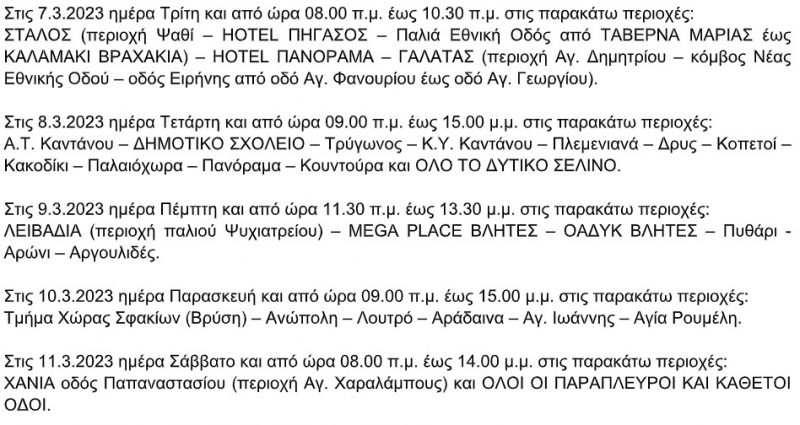 Nομός Χανίων: Σε ποιες περιοχές θα διακοπεί το ρεύμα την επόμενη εβδομάδα