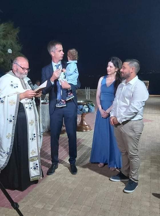 Η βάφτιση πραγματοποιήθηκε παρουσία των προβλεπόμενων ατόμων στο εκκλησάκι των Αγίων Αποστόλων Χανίων.