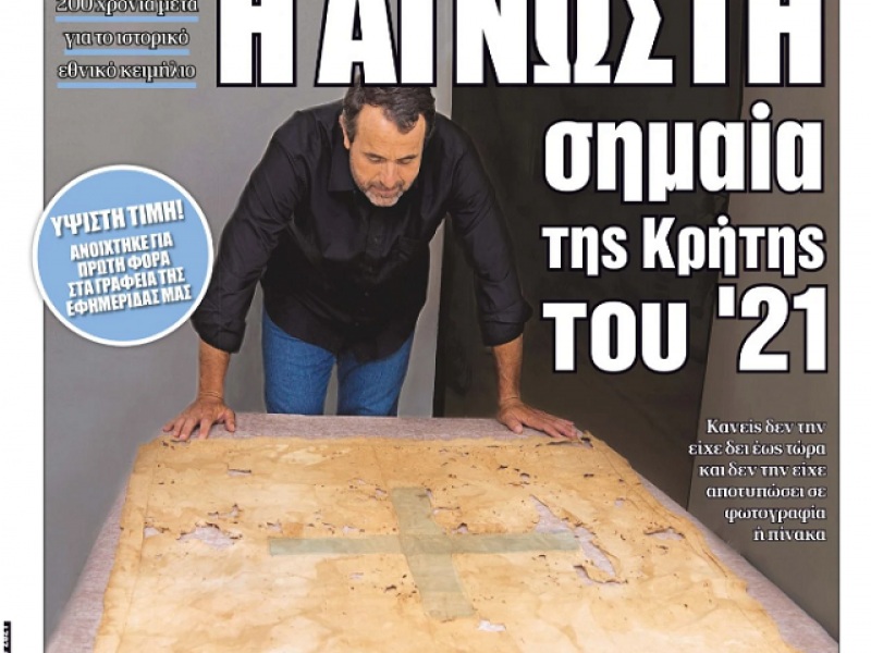 Η εφημερίδα Δημοκρατία παρουσιάζει για πρώτη φορά στα σύγχρονα χρόνια τη σημαία της επαναστατημένης Κρήτης,  που κι αυτή το 1821 σήκωσε τα όπλα εναντίον του Τούρκου δυνάστη.