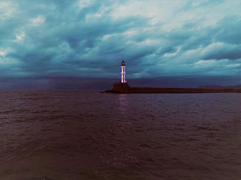 Έτσι, εμβληματικά μέρη των Χανίων, όπως ο Φάρος στο Ενετικό Λιμάνι και το θέατρο «Μίκης Θεοδωράκης», φωτίζονται στα γαλανόλευκα χρώματα για τις επόμενες ημέρες, ως ένας ελάχιστος φόρος τιμής στους ήρωες που θυσιάστηκαν για την ελευθερία και την ανεξαρτησία μας.