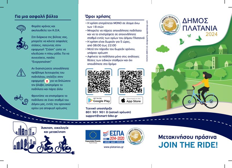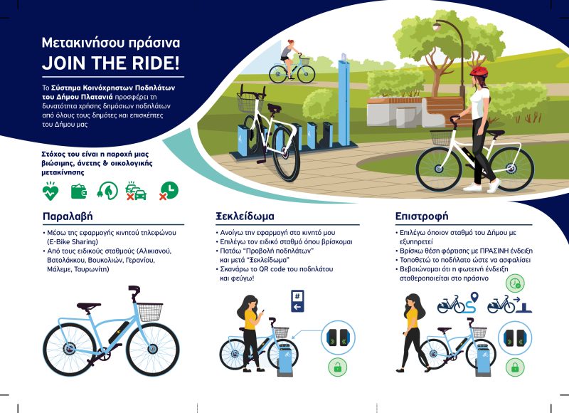 Ο Δήμαρχος Πλατανιά κος Ιωάννης Μαλανδράκης υπογράμμισε ότι «..ότι ο Δήμος Πλατανιά υλοποιεί με συνέπεια δράσεις που ενισχύουν την ποιότητα ζωής, την αστική βιωσιμότητα με περιβαλλοντική υπευθυνότητα. Το νέο σύστημα κοινόχρηστων ποδηλάτων δεν είναι μόνο ένα καινοτόμο εργαλείο μετακίνησης, αλλά και ένα μήνυμα για αλλαγή της νοοτροπίας μας. Με αφορμή την Παγκόσμια Ημέρα Ποδηλάτου, καλούμε όλους να κάνουν το ποδήλατο κομμάτι της καθημερινότητάς τους “κατεβάζοντας” την εφαρμογή E–Bike Sharing στο smartphone τους και να χρησιμοποιήσουν δωρεάν τα ηλεκτρικά ποδήλατα του Δήμου μας με σύνθημα .. JOIN THE RIDE! Μετακινήσου πράσινα – Μετακινήσου έξυπνα – Μετακινήσου με το ποδήλατο!.»