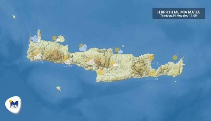 Νεφώσεις με βροχές προβλέπονται στην Κρήτη. Χιονοπτώσεις θα σημειωθούν στα ορεινά κυρίως της Κρήτης.