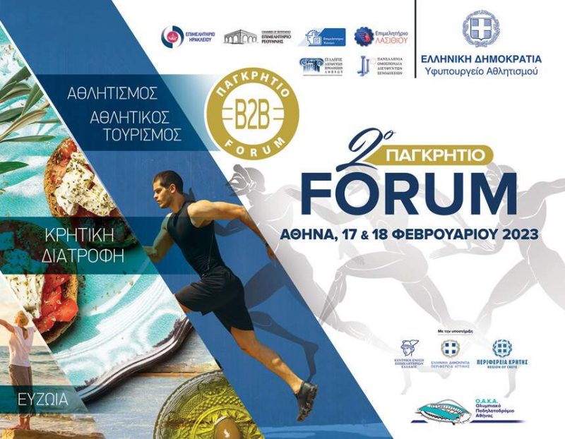 Το «2o ΠΑΓΚΡΗΤΙΟ FORUM ΠΡΟΩΘΗΣΗΣ ΚΡΗΤΙΚΩΝ ΠΡΟΪΟΝΤΩΝ ΣΤΑ ΕΛΛΗΝΙΚΑ ΞΕΝΟΔΟΧΕΊΑ & ΤΑ ΔΙΚΤΥΑ ΔΙΑΝΟΜΗΣ» θα πραγματοποιηθεί και πάλι στο Ολυμπιακό Αθλητικό Κέντρο Αθηνών (ΟΑΚΑ) στις 17 και 18 Φεβρουαρίου 2023, από τα τέσσερα Επιμελητήρια της Κρήτης σε συνεργασία με το Υφυπουργείο Αθλητισμού.