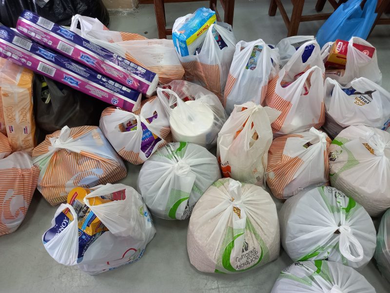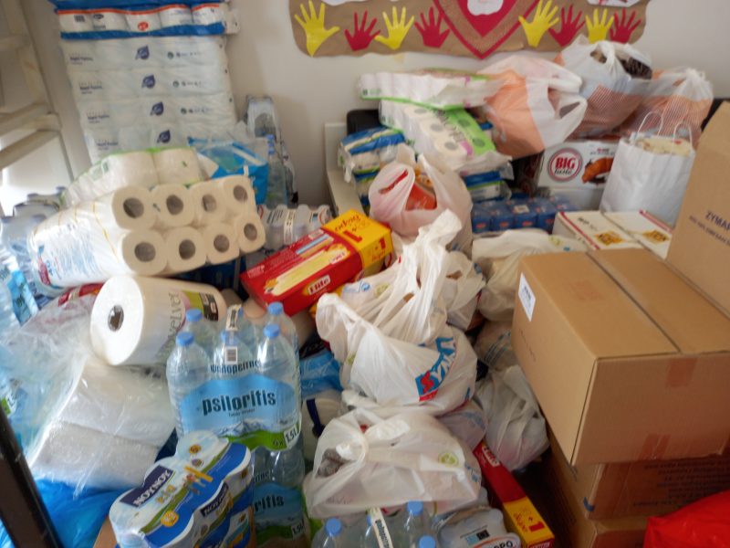 Συνολικά συγκεντρώθηκαν πλέον των 15 παλετών που περιλαμβάνουν τρόφιμα μακράς διαρκείας, είδη προσωπικής υγιεινής, φάρμακα, κλινοσκεπάσματα και τροφές για ζώα.