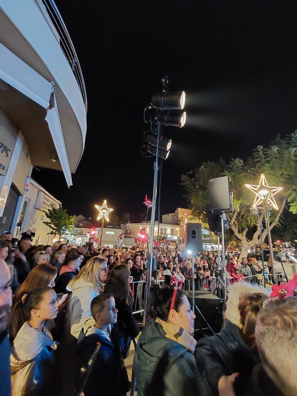 Από το πρωί σήμερα, τα ψώνια ήταν ξεχωριστά με γιορτινές μουσικές από DJs. Το ξεκίνημα της μέρας των πολυδιάστατων εκδηλώσεων στην Αγορά των Χανίων ήταν αφιερωμένο στα παιδιά και την Οικογένεια: Με παιδικό θέατρο, αιωρούμενους καλικάντζαρους, face-painting, show με σαπουνοφουσκες, μπαλονοκατασκευές με τη συμμετοχή σημαντικών καλλιτεχνών από τα Χανιά και προσφορές τοπικών κερασμάτων από τοπικές επιχειρήσεις. Την ίδια στιγμή, οι μικροί φίλοι απόλαυσαν τα συμβολικά δώρα, τα κεράσματα και τις φωτογραφίες τους με τον Αϊ Βασίλη και τους καλικάντζαρους.