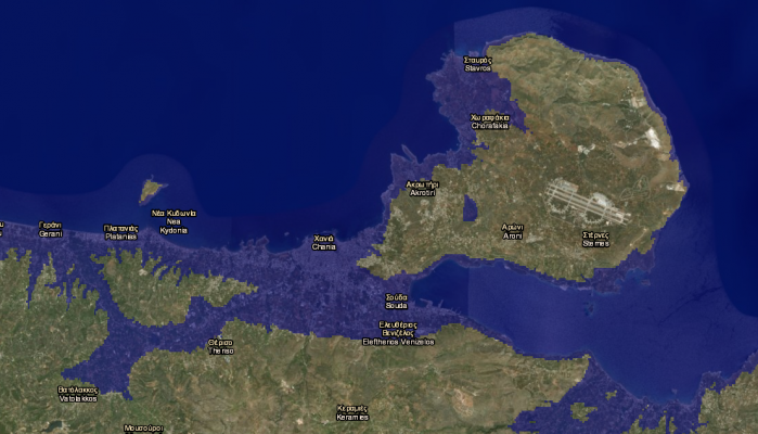 Η θάλασσα θα φτάσει μέχρι τη Λάρισα, την Έδεσσα και τη Βέροια. Παραδόξως η Μύκονος, η Πάρος, η Νάξος και άλλα νησιά όπως το Καστελόριζο παραμένουν στη θέση τους.