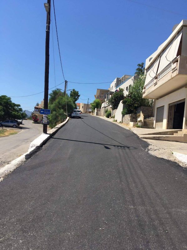 Ο Δήμος, το προηγούμενο διάστημα με ίδια μέσα είχε προβεί σε προσωρινή αποκατάσταση της παραπάνω οδού και μετά την εκπόνηση των απαραίτητων μελετών, προχώρησε στην ανακατασκευή και πλήρη ασφαλτόστρωση της οδού, μήκους περίπου1.800 μέτρων.