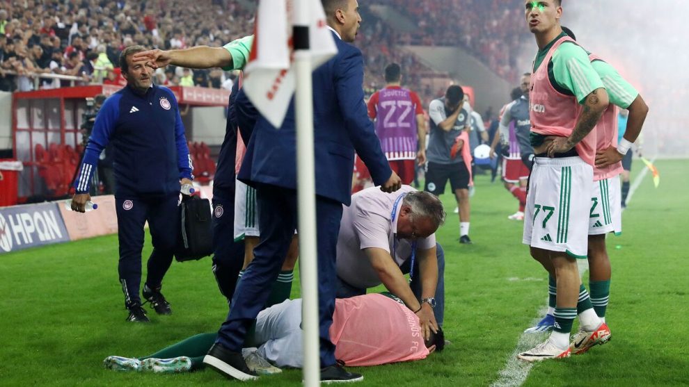 Διεκόπη οριστικά το ντέρμπι Ολυμπιακός – Παναθηναϊκός μετά την κροτίδα που έπεσε δίπλα στο Χουάνκαρ.