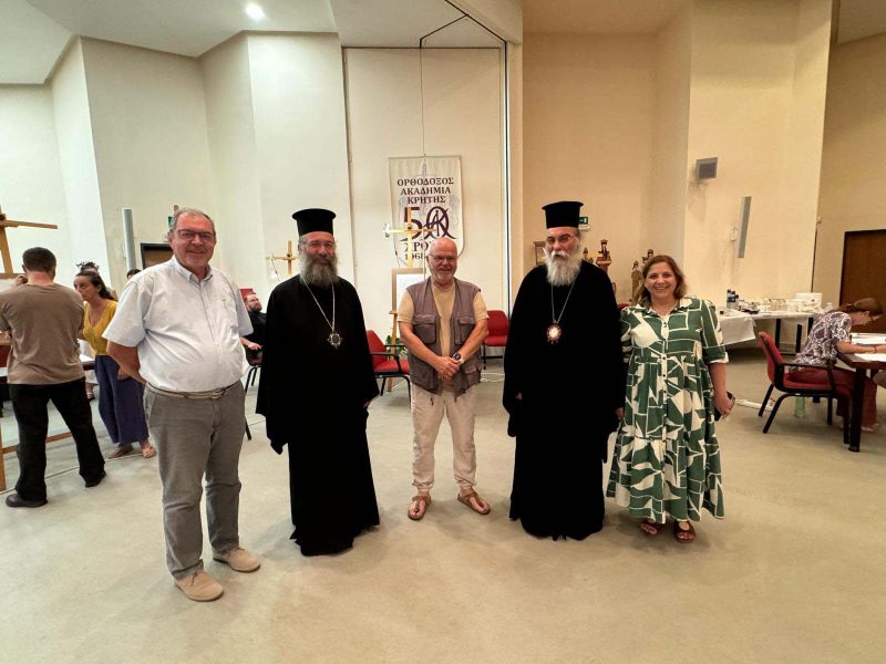 Ο Σεβασμιώτατος Κισάμου και Σελίνου Αμφιλόχιος, Πρόεδρος της ΟΑΚ, μαζί με τον Σεβασμιώτατο Ρεθύμνου και Αυλοποτάμου Πρόδρομο και τον Γενικό Διευθυντή της ΟΑΚ Δρ Κωνσταντίνο Ζορμπά, επισκέφτηκαν τους συμμετέχοντες στο Εργαστήριο και εξέφρασαν τις θερμές ευχαριστίες προς τον Δρ Γεώργιο Κόρδη για την ιδιαίτερη τιμή της παρουσίας του και την επιλογή της ΟΑΚ για τη διεξαγωγή του Θερινού Σχολείου στο Ίδρυμα.