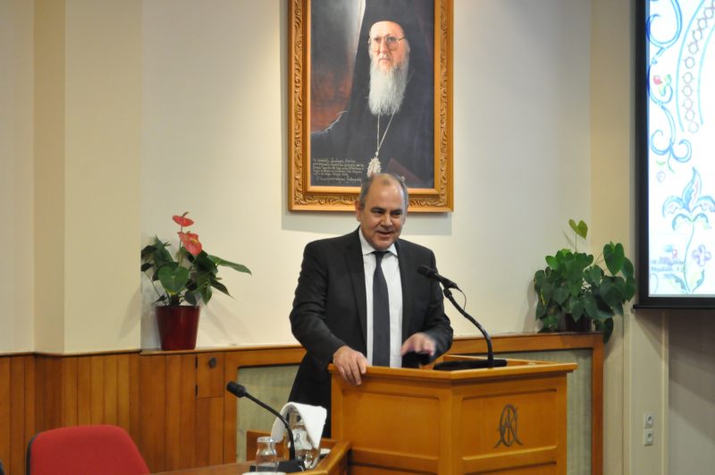 Ο Γενικός Διευθυντής της ΟΑΚ, Δρ Κωνσταντίνος Ζορμπάς, καλωσορίζοντας τους προσκεκλημένους σημείωσε, μεταξύ άλλων, τα εξής: «Οι τρεις “μεγίστοι φωστήρες της Τρισηλίου Θεότητος” Πατέρες της Εκκλησίας μας, αγάπησαν τη γνώση και θαύμασαν τα επιτεύγματα της εποχής τους, συμβάλλοντας στην πρόοδο όλων των Επιστημών με τις οποίες ασχολήθηκαν. Αν, όμως, ήταν μόνο αυτά τα επιτεύγματά τους, θα είχαν μείνει ως κάποιοι σοφοί επιστήμονες, ανάμεσα σε χιλιάδες άλλους σοφούς της εποχής μας, κλεισμένοι σε εργαστήρια ή ταγμένοι στην έρευνα, αποκομμένοι από τον πόνο των φτωχών και των αδυνάτων, […]». Συνεχίζοντας ο κ. Ζορμπάς ανέφερε πως, «για τους Τρεις Ιεράρχες το πρόβλημα της ανισοκατανομής των αγαθών δεν αποδίδεται στο θέλημα του Θεού, ούτε σε φυσικές αιτίες ή τυχαία γεγονότα, αλλά σε συγκεκριμένες ενέργειες αυτών που κατέχουν την εξουσία και τον πλούτο. Αυτό που ζητείται στις ημέρες μας στον χώρο της οικονομίας, ως ανάγκη μεταρρύθμισης, δεν επαρκεί. Δεν αρκούν οι απλές μεταρρυθμίσεις και η αναδιανομή πλούτου. Απαιτούνται ριζικές αλλαγές του ίδιου του τρόπου που παράγουμε και ζούμε, ώστε να μη γίνει κόλαση η ζωή των ανθρώπων που γεννιούνται τώρα ή γεννήθηκαν στα τέλη του 20ού αιώνα».
