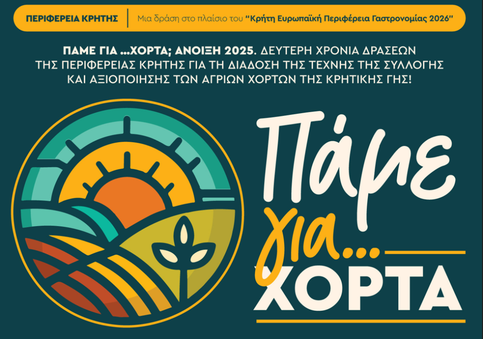 Ολοκληρώνεται αυτό το Σαββατοκύριακο (Σάββατο 26 Απριλίου και Κυριακή του Θωμά 27 Απριλίου), ο κύκλος δράσεων της Περιφέρειας Κρήτης, «Πάμε για… Χόρτα» Άνοιξη 2025.