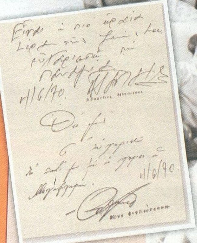 Συγκεκριμένα στο βιβλίο της μονής, με ημερομηνία 4 Ιουνίου 1970, έχουν τα ιδιόχειρα ευχαριστήρια σημειώματά τους που γράφουν: «Θεέ μου, σ’ ευχαριστώ! Το παιδί μου, μου το χάρισε η Μεγαλόχαρη», γράφει η αείμνηστη Αλίκη και ακριβώς από κάτω ο σύζυγός της, Δημήτρης Παπαμιχαήλ, συμπληρώνει: «Είναι η πιο ωραία μέρα της ζωής μου. Ευχαριστώ την Παναγία»