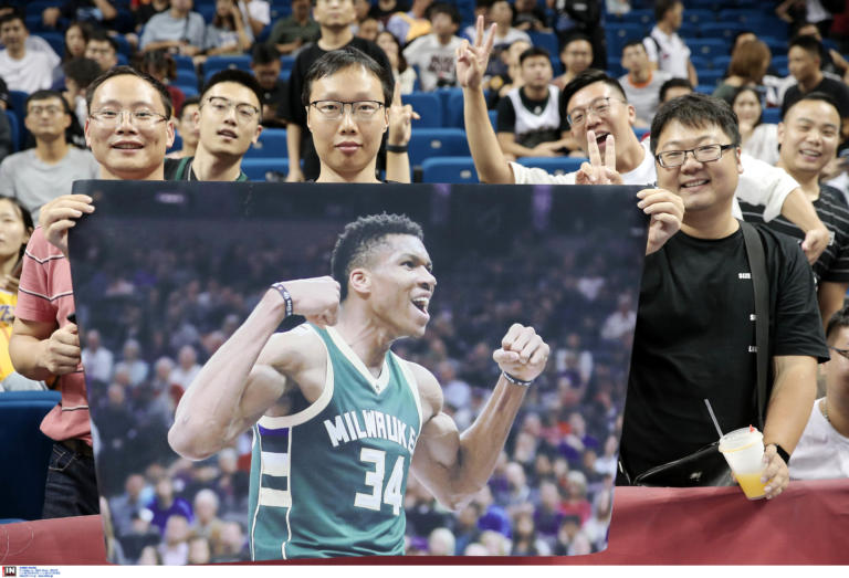 Οι Κινέζοι είχαν ακόμα στις κερκίδες πανό με το πρόσωπο του, αλλά κι αρκετά χαρτονάκια με τον αριθμό 34 και τα αρχικά MVP, ενώ αρκετοί φορούσαν τη φανέλα του στους Μπακς.