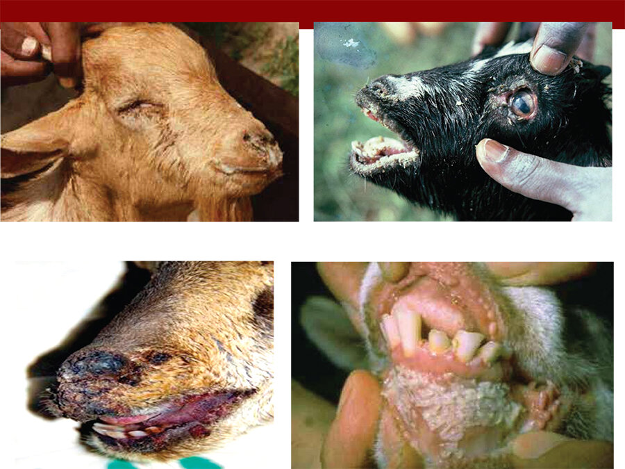Τα ζώα παρουσίασαν πυρετό, ρινικό και οφθαλμικό έκκριμα (εικόνα βρεγμένου προσώπου), νεκρωτική στοματίτιδα με δυσοσμία, αναπνευστικά συμπτώματα, διάρροια και αποβολές στα έγκυα. Είναι η πρώτη φορά που επιβεβαιώνεται η νόσος στην Ελλάδα – η οποία μέχρι σήμερα ήταν απαλλαγμένη της νόσου.
