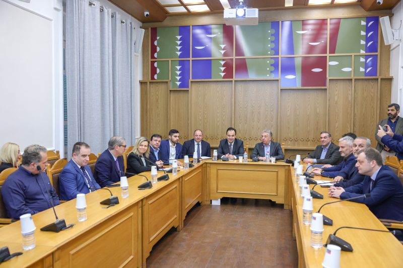 Κατά την επίσκεψή του στην Περιφέρεια Κρήτης ο Υπουργός είχε συνάντηση με τον Περιφερειάρχη, παρουσία των βουλευτών Ηρακλείου Μάξιμου Σενετάκη και Κώστα Κεφαλογιάννη, του Γενικού Γραμματέα Κωνσταντίνου Καράτζαλου και στελεχών του Υπουργείου. Από την Περιφέρεια παραβρέθηκαν ο Αναπληρωτής Περιφερειάρχης Γιώργος Πιτσούλης, οι Αντιπεριφερειάρχες Ηρακλείου Νίκος Συριγωνάκης, Πολιτισμού Γεωργία Μηλάκη, Αγροτικής Οικονομίας Σταύρος Τζεδάκης, κλιματικής Αλλαγής, Γιάννης Αναστασάκης και ο εντεταλμένος Περιφερειακός Σύμβουλος διασύνδεσης με τα Πανεπιστήμια και Ερευνητικά Ιδρύματα Γιώργος Ματαλλιωτάκης.