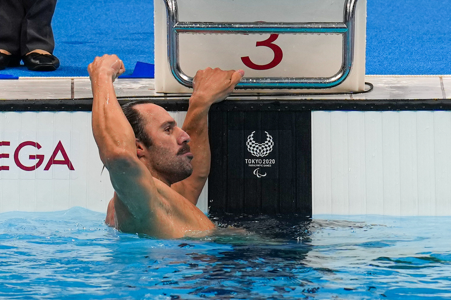 Ο αθλητής Αντώνιος Τσαπατάκης πανηγυρίζει μετά τη λήξη του αγώνα της κολύμβησης στα 100μ πρόσθιο ανδρών κατηγορίας SB4, κατά τη διάρκεια των Παραολυμπιακών Αγώνων στο Τόκιο 2020, Κυριακή 29 Αυγούστου 2021. ΑΠΕ ΜΠΕ/ΕΛΛΗΝΙΚΗ ΠΑΡΑΟΛΥΜΠΙΑΚΗ ΟΜΑΔΑ/ ΝΙΚΟΣ ΚΑΡΑΝΙΚΟΛΑΣ