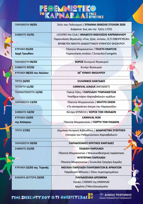 ΤΟ ΠΡΟΓΡΑΜΜΑ ΤΟΥ ΦΕΤΙΝΟΥ ΡΕΘΕΜΝΙΩΤΙΚΟΥ ΚΑΡΝΑΒΑΛΙΟΥ