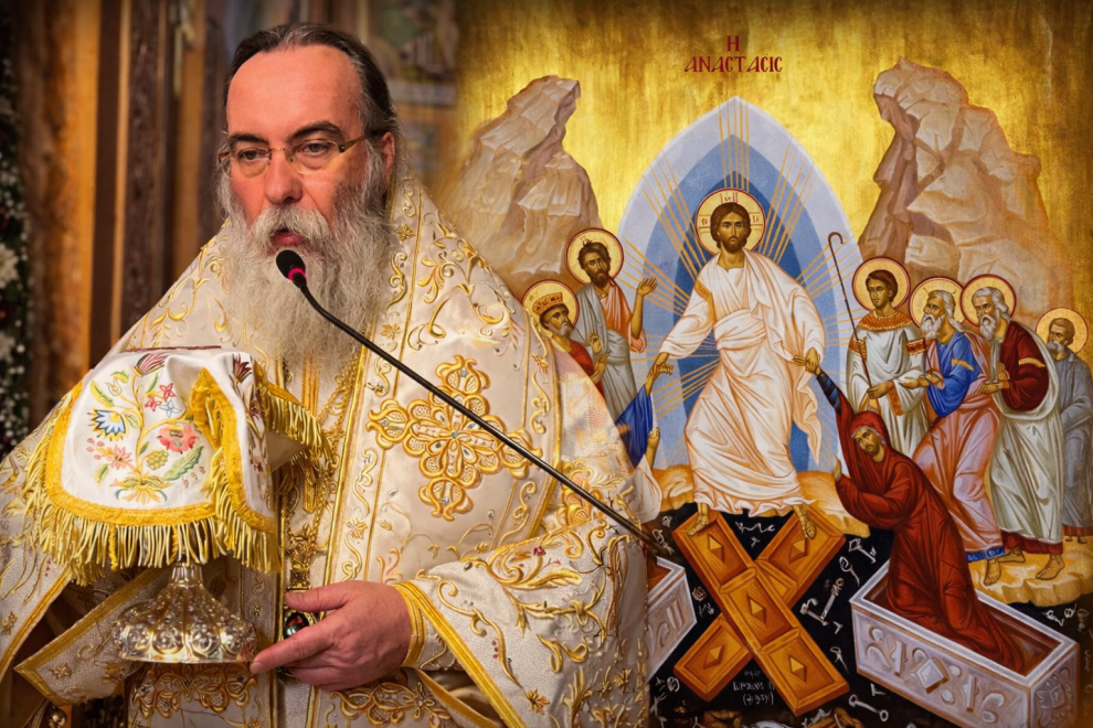 Στον πληγωμένο και κατακερματισμένο κόσμο που ζούμε, σε εποχές όπου οι άνθρωποι, περισσότερο από κάθε άλλη φορά, είναι μπερδεμένοι, ταραγμένοι, φοβισμένοι και ανήσυχοι, η Εκκλησία του Χριστού μας καλεί να ζήσουμε την Ανάσταση του Χριστού. Να ζήσουμε την χαρά της Αναστάσεως, που είναι η μοναδική αναίρεση του θανάτου, η μοναδική καταξίωση του ανθρώπου, καθώς η Ανάσταση του Χριστού είναι πηγή ανεξάντλητης δύναμης• δύναμης που μας κρατά όρθιους και δυνατούς, πέρα από κάθε δυσκολία, πέρα από κάθε εμπόδιο, πέρα από κάθε κρίση. Γεμίζει φως και νόημα την πορεία του ανθρώπου, και καλεί, με το στόμα του υμνωδού, τον κάθε έναν από εμάς προσωπικά με την πρόσκληση: «Δεύτε λάβετε φως, εκ του ανεσπέρου Φωτός και δοξάσατε Χριστόν τον Αναστάντα εκ νεκρών».