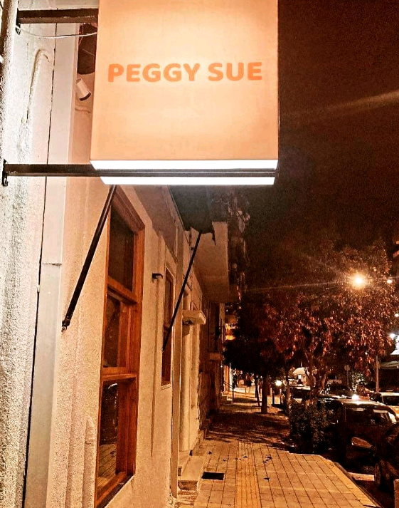 Όσο για το όνομα, το Peggy Sue, όπως μου εκμυστηρεύτηκε ο Κωνσταντίνος Μουντάκης, είναι εμπνευσμένο από το εμβληματικό rock & roll κομμάτι «Peggy Sue» του Μπάντι Χόλι. Ένα άκουσμα των στίχων και της ρυθμικής του μουσικής έπεισε τον Κωνσταντίνο Μουντάκη και την Αγγελική Γιαννακοπούλου (ιδιοκτήτες του μαγαζιού) να δώσουν σάρκα και οστά στο όνειρό τους και, κάπως έτσι… εγένετο το Peggy Sue.