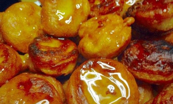 Ανά διαστήματα να βουτάτε το κουτάλι σε ένα ποτήρι νερό για να μη κολλάει το μείγμα πάνω. Σερβίρονται με μπόλικο άθερμο μέλι.