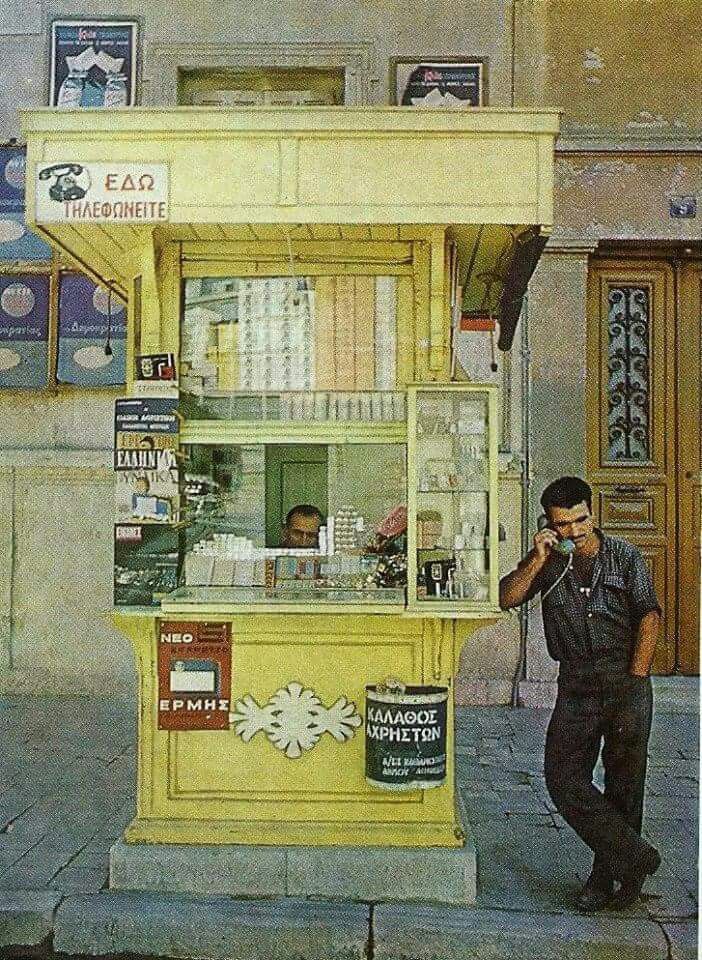 Η δεκαετία του ’50 και του 60 είναι οι δεκαετίες της μεγάλης εσωτερικής μετανάστευσης και πλήθος ανθρώπων από την επαρχία συρρέουν στην Αθήνα κατά κύριο λόγο. Για τηλέφωνο στο σπίτι ούτε κουβέντα, έτσι τα περίπτερα με τις τηλεφωνικές τους συσκευές και τα τηλέφωνα με μετρητές και αργότερα με κερματοδέκτες (τα κόκκινα τηλέφωνα, τα θυμάστε;;;;) είναι βασικά για την επικοινωνία με συγγενείς και φίλους στους τόπους καταγωγής. Οι περιπτεράδες ξέρουν περισσότερα για τη γειτονιά από τους πάντες, ακούν τα πάντα βλέπετε!