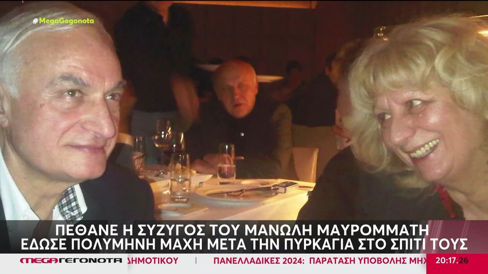 Υπενθυμίζεται ότι στα μέσα Φεβρουαρίου, ο Μανώλης Μαυρομμάτης και η σύζυγός του μεταφέρθηκαν εσπευσμένα στο νοσοκομείο ύστερα από μεγάλη φωτιά στο διαμέρισμά τους στο Κολωνάκι.