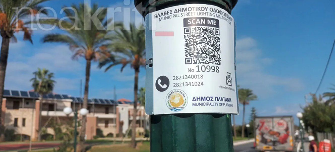 Ειδικές πινακίδες, υπάρχουν πλέον σε 2.000 πυλώνες φωτισμού, με τις οποίες ο δημότης αφού σκανάρει τον ψηφιακό κωδικό με τη συσκευή του κινητού τηλεφώνου του, αυτόματα μεταβαίνει στη σελίδα δήλωσης βλαβών, χωρίς να έχει εγκαταστήσει καμία εφαρμογή, μεταβαίνει στη σελίδα δήλωσης βλαβών με αναγραφή των στοιχείων του και κατόπιν επιλέγει και τον τύπο βλάβης. Σε πραγματικό χρόνο το αρμόδιο τμήμα των Τεχνικών Υπηρεσιών του Δήμου ενημερώνεται για τη βλάβη και δίνει την αντίστοιχη εντολή αποκατάστασης.