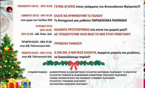 Πλάτανος Κισάμου: Το πρόγραμμα των Χριστουγεννιάτικων εκδηλώσεων (29/12/2023 – 4/1/2024)