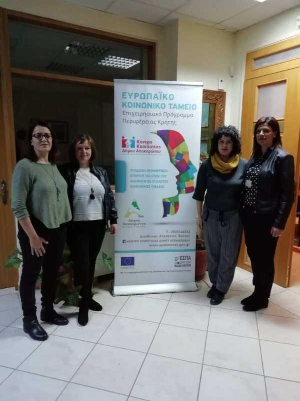 ΕΠΙΚΟΙΝΩΝΙΑ: Κατερίνα ΜαργαριτάκηΚοινωνική Λειτουργός), Κλειώ Αποστολάκη (Ψυχολόγος), Δημαρχείο Αποκορώνου, Βρύσες, τηλέφωνο 28253 40322, margaritaki@apokoronas.gov.gr, apostolaki@apokoronas.gov.gr