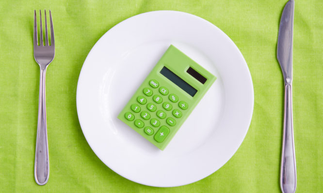 Empty plate with a calculator on it - dieting concept image