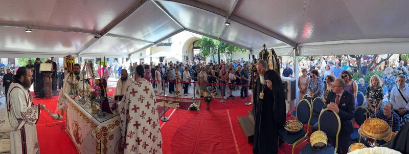 Ο χοροστατών Ιεράρχης κ. Μύρωνας εξέφρασε την χαρά του για την συμμετοχή του «στο πνευματικό αυτό πανηγύρι της Παναγίας», σημειώνοντας μεταξύ άλλων στον μεστό και ζείδωρο λόγο του: «Η Παναγία μας είναι το δώρο της ανθρωπότητας προς τον Ουρανό. Παρακαλούμε σήμερα την Παναγία μας να παρακαλέσει τον Κύριο μας Ιησού Χριστό να μας δωρίσει τον παράδεισο, να μας κάνει τους ίδιους παράδεισο, να ενεργούμε ως παράδεισος, ως άγγελοι του Θεού. Έτσι πραγματώνεται ο πραγματικός σκοπός της υπάρξεως μας. Αν σκεφτούμε ότι τίποτα απ΄ όσα έχουμε δεν είναι δικά μας. Είναι όλα δώρα του Θεού. Μεγαλειώδη τα δώρα που λαμβάνουμε από τον Θεό σε αυτή την ζωή, ανεξάντλητα. Να κρατήσουμε όλοι μας αυτή την πίστη και αυτό το φρόνημα ως τον θησαυρό στην καρδιά μας και ως την πυξίδα στην ζωή μας», κατέληξε ο Σεβ. Μητροπολίτης Νέας Ζηλανδίας κ. Μύρωνας, ο οποίος εξέφρασε την θαυμασμό του και την συγκίνηση του για τα πλήθη των προσκυνητών που, «με ευλάβεια και σεβασμό» ανέμεναν έως ότου προσκυνήσουν.