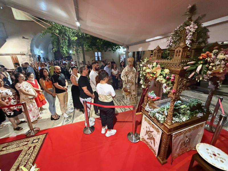 Ελπιδοφόρα, επίσης, η συμμετοχή στο μυστήριο της Θείας Ευχαριστίας, τόσο κατά την Ιερά Αγρυπνία, όσο και την κυριώνυμο ήμερα, όπου από τρία Άγια Ποτήρια και στις δύο Θείες Λειτουργίες, κοινωνούσαν σχεδόν επί 1 ώρα. Ο Σεβ. Μητροπολίτης Κισάμου και Σελίνου κ. Αμφιλόχιος, με λόγους αγάπης και φιλαδελφίας, αναφέρθηκε στο πρόσωπο του προεξάρχοντος, Σεβ. Μητροπολίτου Νέας Ζηλανδίας κ. Μύρωνος, τον οποίο ονόμασε «σύγχρονο Ιεραπόστολο που μεταφυτεύει την αλήθεια της Αποκαλύψεως σε λαούς και Έθνη, ιδιαίτερα στα νησιά Φίτζι», σημειώνοντας, αναφερόμενος στον πρόσωπο της Παναγίας μας «Σε εποχές που άκριτα και αβασάνιστα υιοθετούμε ένα πολιτισμό που θεωρεί ότι η επιθυμία μας είναι ο εαυτός μας, που επιτρέπει τα αληθινά, τα αυθεντικά ήθη της ψυχής ενός λαού να τα διαδεχθούν η αναλγητικότητα, ο ατομοκεντρικός εφησυχασμός, το βόλεμα, οι «μισές» αλήθειες, η ένοχη σιωπή, θεωρώντας τα όλα αυτά και άλλα πολλά, συντελεστή της ευδαιμονίας των ανθρώπων, έρχεται η Παναγία Μητέρα μας, δια της δικής Της Κοίμησης να μας ελευθερώσει από τους θανάτους της χαράς και της ελπίδας, βεβαιώνοντας μας ότι στο δικό Της και μόνο Πρόσωπο η ελπίδα παραμένει ζωντανή», κατέληξε ο Σεβ. Μητροπολίτης Κισάμου και Σελίνου κ. Αμφιλόχιος, δίδοντας τον λόγο στον προεξάρχοντα Ιεράρχη του Οικουμενικού μας Πατριαρχείου, Σεβ. Μητροπολίτη Νέας Ζηλανδίας κ.Μύρωνα.