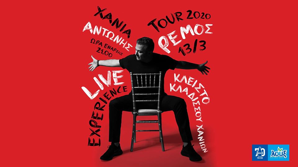 Στα Χανιά ο Αντώνης Ρέμος θα εμφανιστεί την Παρασκευή 13 Μαρτίου στις 9 μ.μ. στο Κλειστό του Κλαδισσού.