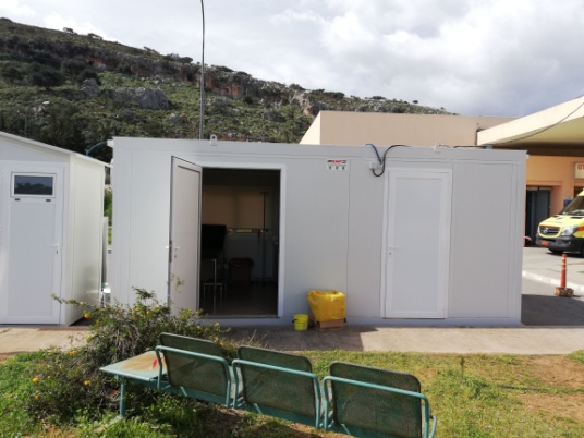 Αρχικά, στην καθοριστική φάση χαρτογράφησης κρουσμάτων COVID-19, η Χανιώτικη εταιρεία δώρισε ένα “ISO BOX” για τον έλεγχο ύποπτων περιστατικών εκτός του κτηρίου του νοσοκομείου, σύμφωνα με το πρωτόκολλο.
