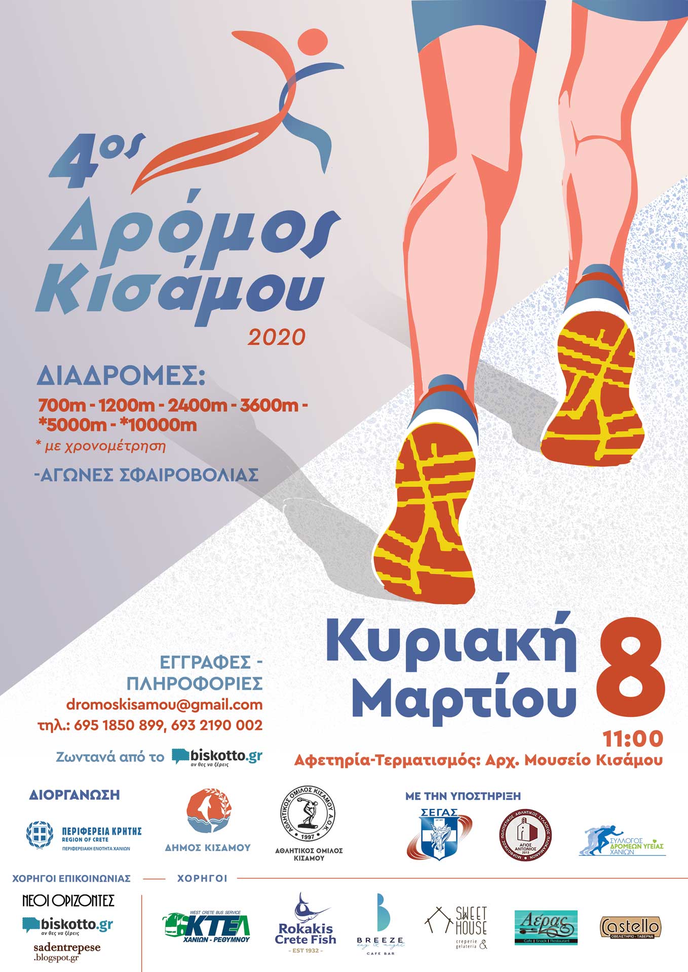 Θα θέλαμε να σας ενημερώσουμε ότι την Κυριακή 08 Μαρτίου που θα διεξαχθεί ο 4ος ΔΡΟΜΟΣ ΚΙΣΑΜΟΥ θα κλείσουν οι δρόμοι της Κισάμου για κάποιες ώρες.