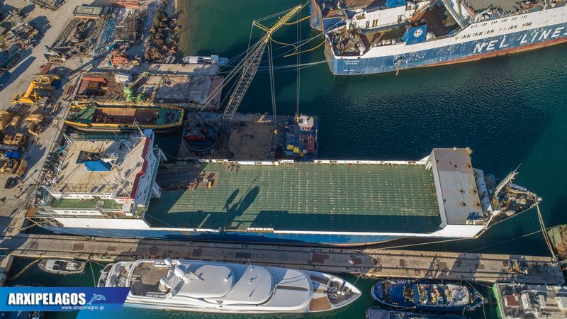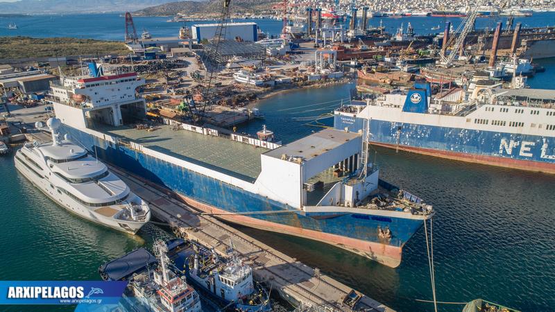 Στα νέα ελληνικά ναυπηγεία του Spanopoulos Group στα Αμπελάκια της Σαλαμίνας, βρίσκεται εδώ και λίγο καιρό για εργασίες επισκευής και δεξαμενισμού το νέο απόκτημα της Creta Cargo Lines.
