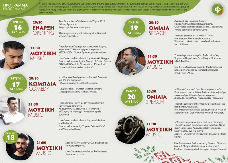 Ο επισκέπτης θα έχει τη δυνατότητα να γνωρίσει την Κρήτη μέσα από τους θησαυρούς που προσφέρει η γη και οι άνθρωποι της, αλλά και να απολαύσει πλήθος πολιτιστικών εκδηλώσεων και συναυλιών που θα γίνονται στον ίδιο χώρο .