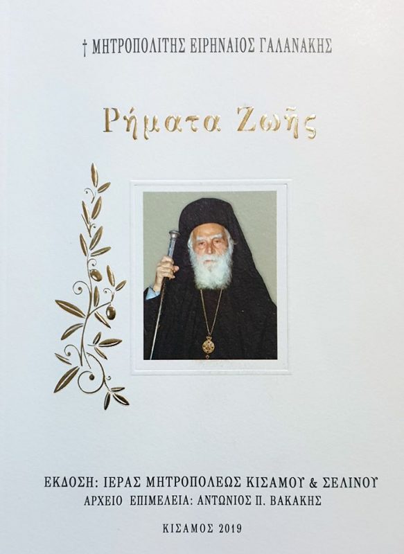 “Ρήματα Ζωής” τιτλοφορείται το νέο βιβλίο που έγραψε και επιμελήθηκε ο Αντώνης Βακάκης, και περιέχει ανέκδοτες – απομαγνητοφωνημένες ομιλίες του αειμνήστου Μητροπολίτου Ειρηναίου Γαλανάκη.
