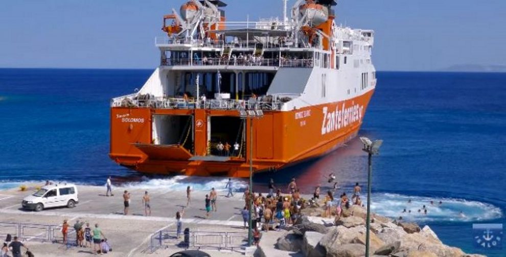 Ως είθισται στο νησί, στους καλοκαιρινούς αποχαιρετισμούς το πλοίο κορνάρει παρατεταμένα και ο κόσμος βουτάει στα απόνερα του.