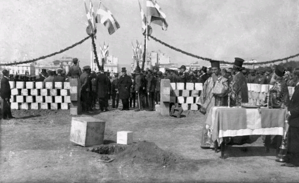 Εκεί, όπου σήμερα βρίσκεται το άγαλμα της Αθηνάς, ο κάθε διαδηλωτής ρίχνει μία πέτρα και επαναλαμβάνει την κατάρα του Αρχιεπισκόπου Αθηνών, Θεόκλητου: «Κατά Ελευθερίου Βενιζέλου φυλακίσαντος αρχιερείς και επιβουλευθέντος την βασιλείαν και την πατρίδαν, ανάθεμα έστω». Μια καθαρά συμβολική πράξη, δηλωτική όμως της έντασης των παθών που επικρατούσε εκείνη την εποχή στη χώρα μας.
